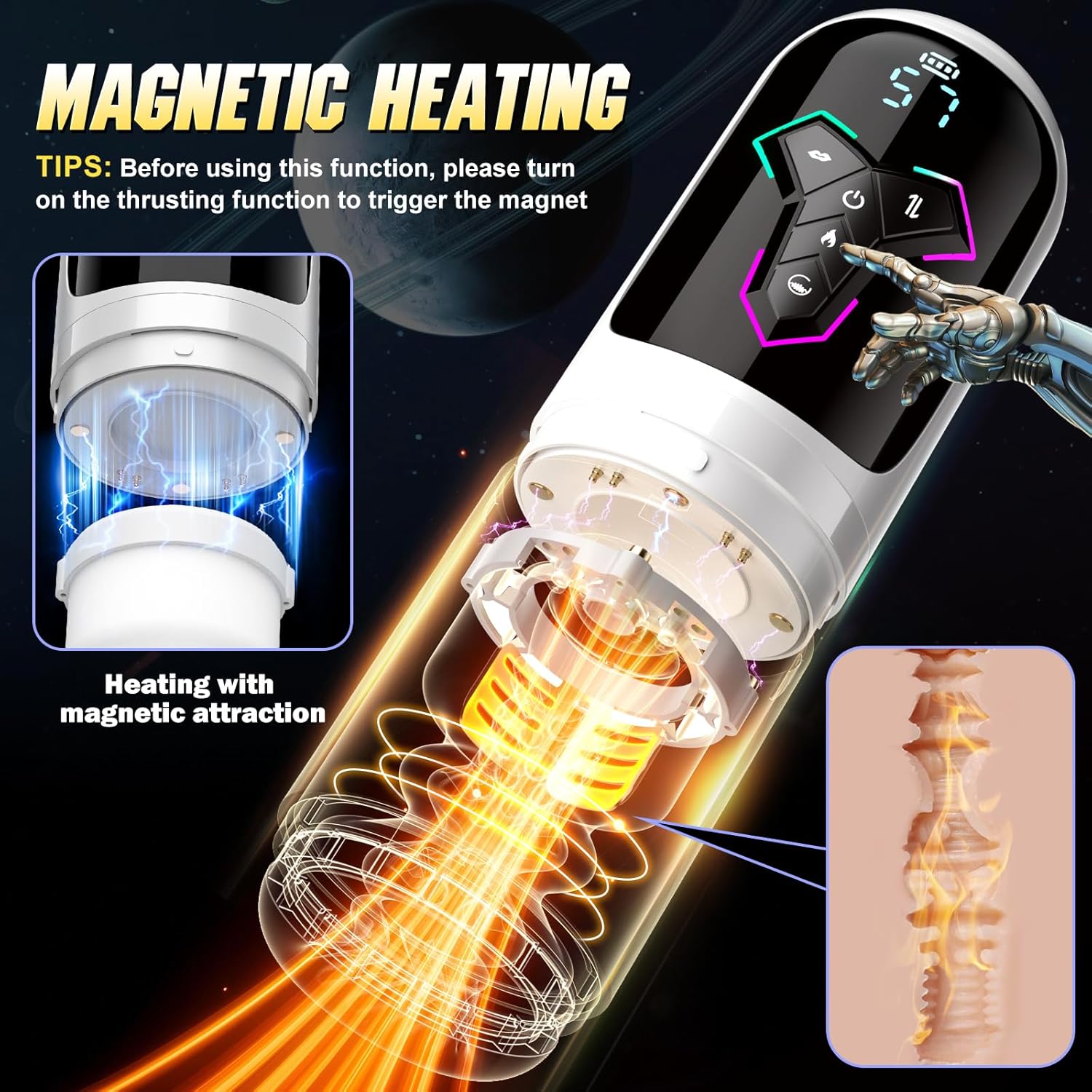 Heating Male Masturbator Penis Pump - Upgrade 5 in 1 Male Sex Toys for Men with 10 Vibrating & Licking 7 Thrusting & 5 Suck Modes, Adult Sex Toys Pocket Pussy APP Control Sex Furniture - Bedding