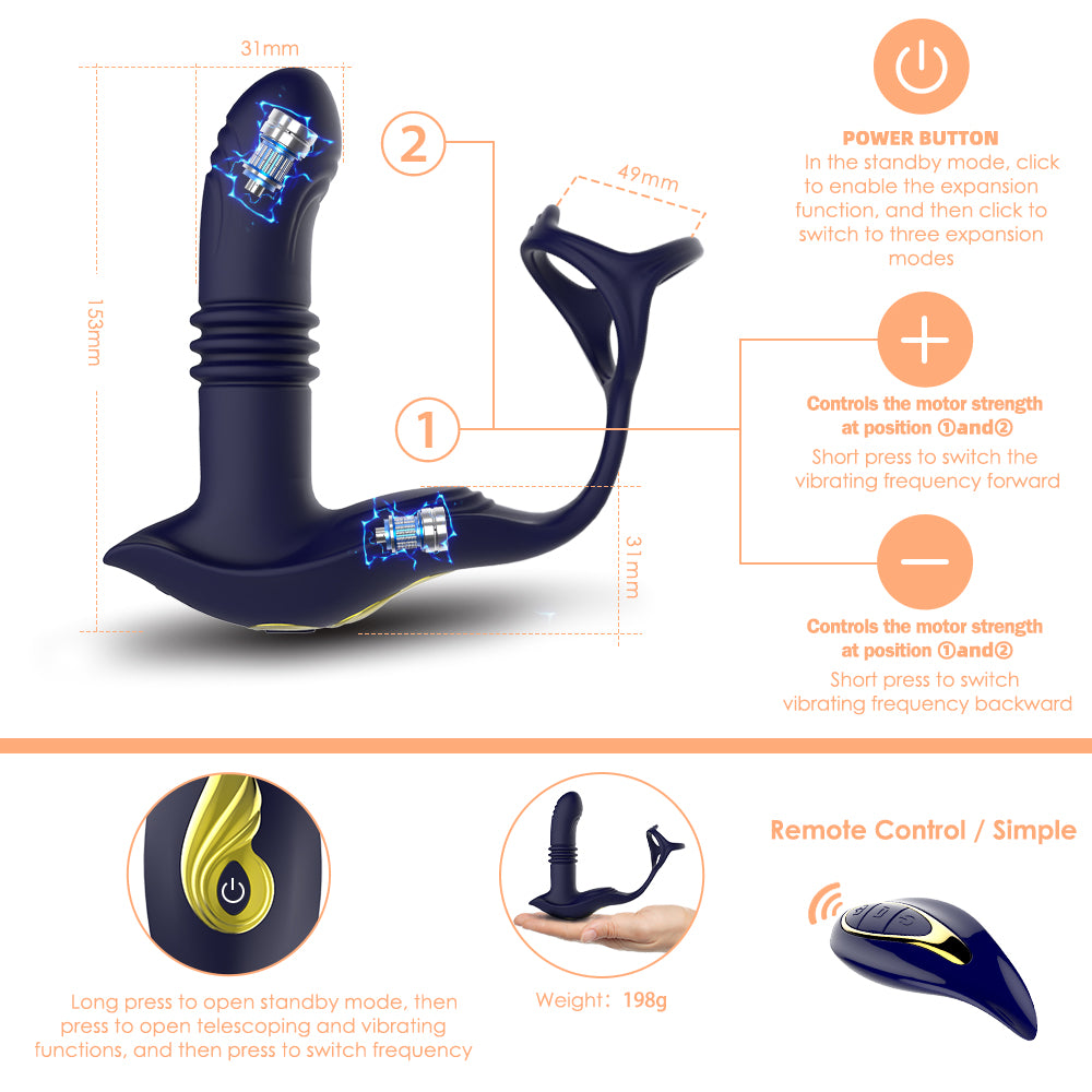 [A Stretchy Silicone Ring, Plus Powerful Thrusting Anal Vibrator]: 3 In 1 Design Anal Vibrator + Prostate Massagers + Cockring. Our sex toy is a butt plug with cock ring – it combines the erection-boosting power of a silicone cock ring with perineum massage, awesome anal stimulation, and some light prostate play. As you move, your motion tugs gently on the toy, sending waves of pleasure from the base of your penis to your prostate.