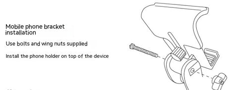 Attach the phone holder to the top of the device using the provided bolts and wing nuts.