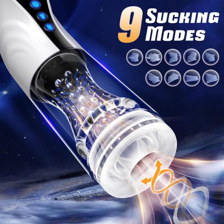 3-in-1 Enhanced Male Masturbator: This sex toy offers 9 thrusts, 9 rotations and 9 suction modes, covering almost all functions of similar toys, and the rotation, retraction and suction functions are independently controlled, so you can use them at the same time or separately. 9 Thrusts, 9 Rotations and 9 Suggestions: This male masturbator is equipped with a high-quality and exquisite rotary motor, and the rotation of the ball bearing prevents clogging, combining thrust, rotation and suction to provide a comprehensive and enhanced experience. Smart LCD Digital Display: Our hands-free masturbator is equipped with a digital LCD display for easy operation, showing the current suction and vibration mode, allowing you to select and save your favorite settings for later use. 3D Textured Sleeve and Soft TPE Material: This male adult toy comes with a soft 3D textured sleeve. Flexible and pliable, the multi-layer spiral folds and raised particles enhance stimulation, and can also be used as a training tool, penis pump or pocket vagina. Easy to Clean: The male product is made of ultra-soft and flexible TPE material, suitable for all sizes. The removable inner sleeve can be cleaned by rinsing underwater or soaking in warm soapy water. Note: The entire toy is not waterproof, only the inner sleeve can be cleaned. Absolute privacy and ultra-quiet: This male sex toy is discreetly packaged without suspicious labels. The upgraded sex toy motor is powerful and stable, with an operating noise of less than 50 decibels, which can achieve silent use.