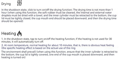 🕳️Enclose with a hot air heating system. Before use, warm up the sleeve to a comfortable 40℃, enhancing your pleasure with a soothing warmth. After use, the drying function ensures a clean and hygienic sleeve.